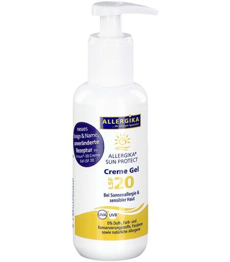 Anwendungsgebiet von Allergika Sun Protect Creme Gel Lsf 20Allergika Sun Protect Creme Gel Lsf 20 – Ihr zuverlässiger Begleiter bei SonnenscheinWenn Sie Ihre empfindliche oder zu Allergien neigende Haut wirksam vor UV-Strahlung schützen möchten, ist dieses Creme-Gel genau das Richtige für Sie.Allergika Sun Protect Creme Gel Lsf 20 wurde speziell entwickelt, um Gesicht und Körper gleichermaßen zu pflegen und zu schützen – selbst bei besonders sensibler Haut.Die sanfte, hautfreundliche Formel eignet sich für alle Hauttypen und bietet zuverlässigen Schutz, ohne zu reizen. So können Sie und Ihre Familie sonnige Tage unbeschwert genießen. Vertrauen Sie auf dermatologisch erprobten Sonnenschutz, der Ihre Haut zuverlässig vor den schädlichen Auswirkungen der Sonne bewahrt.Wirkstoffe / Inhaltsstoffe / ZutatenAllergika Sun Protect Creme Gel Lsf 20 enthält:Aqua, Ethylhexyl Methoxycinnamate, Octocrylene, Pentylene Glycol, Ethylhexyl Stearate, Cetearyl Isononanoate, Diethylamino Hydroxybenzoyl Hexyl Benzoate, Acrylates/C10-30 Alkyl Acrylate Crosspolymer, Polyglyceryl-4 Isostearate, Sodium Hydroxide, Disodium EDTAGegenanzeigenBei bekannter Überempfindlichkeit gegenüber einem der oben genannten Inhaltsstoffe sollte das Produkt nicht angewendet werden.DosierungAnwendungsempfehlung von Allergika Sun Protect Creme Gel Lsf 20:Täglich nach der Reinigung und 30 min vor der Sonnenexposition großzügig auf Gesicht, Hals und Dekolleté auftragen und einziehen lassen. Kontakt mit Augen vermeiden. Regelmäßig wiederholen, besonders nach dem Schwitzen und Baden. Geringere Mengen reduzieren die Schutzwirkung erheblich. Die maximale Aufenthaltsdauer in der Sonne wird dadurch nicht verlängert. Intensive Sonnenbestrahlung meiden. Auch Sonnenschutzprodukte mit hohem LSF bieten nicht 100% Schutz. Kontakt mit Textilien vermeiden. Nicht über 25°C lagern.HinweiseKontakt mit Augen vermeiden. Regelmäßig wiederholen, besonders nach dem Schwitzen und Baden. Geringere Mengen re ...