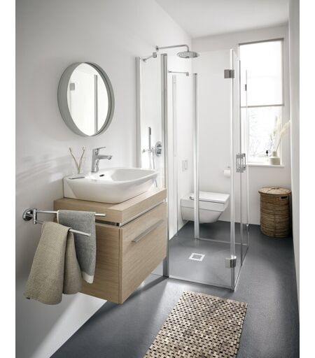LIGA Die Feine. LIGA ist so variabel, dass sie so gut wie für jede Duschplatzsituation eine optimale Lösung bietet. Natürlich auch für Ihre. Die Serie ist der beste Beweis dafür, dass auch bei geringeren Budgets nicht zwangsläufig Abstriche in Sachen Qualität und Design gemacht werden müssen. Alle wesentlichen Teile sind aus Metall gefertigt. Wie auch die ergonomischen Bügelgriffe, die die Handhabung im Alltag erleichtern. Alle Gelenke, Verbindungen und Griffe sind zudem hochwertig verchromt. Ach ja: Und sie sieht übrigens auch fabelhaft aus. Details: Serie: Liga Artikelnummer: LIF2U093181AK Modellnummer: LIF2U EAN: 4051484580621 Hersteller: Kermi Material Profil: eloxiertes Aluminum Profilfarbe: silber mattglanz Glasart: Einscheiben-Sicherheitsglas (ESG) Glasfarbe: klar Beschichtung: ohne Beschichtung Breite in mm: 930 Breite Festfeld von (mm): 310 Breite Festfeld bis (mm): 335 Breite Festfeld links von (mm): Breite Festfeld links bis (mm): Breite Festfeld rechts von (mm): Breite Festfeld rechts bis (mm): Einstiegbsbreite von (mm): Einstiegsbreite bis (mm): Höhe (mm): 1850 Profiltiefe: 32 mm Rücksprung R: 10 mm Designer: KERMI inhouse Glasstärke (mm): 5 Glasbreite von (mm): 940 Glasbreite bis (mm): Glasaussenkante von (mm): 920 Glasaussenkante bis (mm): Wanneneinbaumass von (mm): Waneneinbaumass bis (mm): Wanneneinbaumass in Nische von (mm): Wanneneinbaumass in Nische bis (mm): Wanneneinbaumasss mit Seitenwand von (mm): Wanneneinbaumass mit Seitenwand bis (mm): Wanneneinbaumass mit Seitenwand verkürzt von (mm): Wanneneinbaumass mit Seitenwand verkürzt bis (mm): Radius (mm): Hebe-Senk-Funktion: mit Hebe-Senk-Funktion Beschlag flächenbündig: Beschlag aufgesetzt Profilart: teilgerahmt Anschlag: Anschlag links & rechts Serienteil / Serienteil auf Duschwanne / Serienteil auf Duschplatz: Serienteil auf Duschplatz weitere Details: Teilgerahmte U-Form-Duschkabine mit zwei Festfeldern und 2 Pendel-Falt-Flügel, im Gelenkprofil 90° nach innen und außen schwenkbar, im Beschlaggelenk 90° nach innen und außen schwenkbar Inklusive zwei LIGA-Stabilisierungen (innen) Verglasung mit 5 mm Einscheiben-Sicherheitsglas nach DIN EN 12150, optional mit Pflegeleicht-Beschichtung KermiCLEAN Profile aus hochwertigem eloxiertem Aluminium, Griffe und Gelenke aus hochwertigem Metall Bei Oberfläche Silber Mattglanz und KermiEXTRA, Griffe, Gelenkbeschläge und Anschlüsse für Bodenschwelle in edlem Chrom Verstellmöglichkeit im Wandprofil 25 mm Profilgelenk mit Hebe-Senk-Mechanismus Gelenkbeschläge mit Hebe-Senk-Mechanismus Durchgehende Magnetleisten und Dichtprofile, waagerechte Dichtleiste mit Wasserabpralleffekt Mit Bodenschwelle (Höhe 6 mm), oder ohne Bodenschwelle (bodenfrei) installierbar LIGA erfüllt die Anforderungen der Spritzwasserprüfung nach DIN EN 14428 Im Lieferumfang enthalten: Befestigungsmaterial Ein frei platzierbarer transparenter Handtuchhalter-Haken Made in Germany Geprüft nach DIN EN 14428 (CE) und PPP 53005 (TÜV / GS) 20 Jahre Ersatzteil-Nachkaufsicherheit... ...