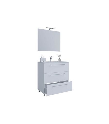 VCM my bath Badmöbel-Set Schubo 914348 weiß 60,0 x 46,0 x 86,0 cm: wenn es optimal werden sollDas VCM my bath Badmöbel-Set Schubo 914348 weiß 60,0 x 46,0 x 86,0 cm bietet Ihnen modernes Design und ein vorteilhaftes Platzangebot. Dieses 3-teilige Set ist in Design und Funktion perfekt aufeinander abgestimmt. So ist Ihr Badezimmer immer aufgeräumt und sorgt für ein schönes Ambiente bei der täglichen Badroutine. Sie erhalten eine perfekte Kombination aus Waschtischunterschrank inkl. Waschbecken und Spiegel im praktischen Set. Hinweis: Zu diesem Set wird keine Armatur mitgeliefert.Wichtige Angaben zur Größe und Ausstattung:Maße: 60,0 x 46,0 x 86,0 cmAnzahl Schubladen: 3Bitte beachten Sie, dass sich diese Angaben nur auf den Waschtischunterschrank beziehen.Sorgt für ein optisches HighlightMit den praktischen Bügelgriffen in der Farbe Silber, die ein besonderer Blickfang sind, lässt sich das Möbelstück bequem öffnen und schließen. Die Griffe bestehen aus langlebigem Kunststoff. Weiß ist die Farbe des Exemplars. Sie wirkt modern und harmonisch.Alles zur ProduktausführungSie erwartet diese Produktausführung: Leuchtmittel nicht im Lieferumpfang enthalten.Mehr zu den EigenschaftenFolgende Werkstoffe und deren Machart bieten eine überzeugende Qualität: Das Material Holz, aus dem der Artikel besteht, ist solide. Die Melaminharzbeschichtung macht dieses Möbelelement unempfindlich gegen Stöße, Hitze und Feuchtigkeit und ist zudem auch noch pflegeleicht. Sie erhalten mit dem VCM my bath Badmöbel-Set Schubo eine perfekte Kombination aus Keramik-Waschbecken und einem schönen Korpus.Der LieferumfangDie Lieferung des VCM my bath Badmöbel-Set Schubo erfolgt inklusive Waschtisch-Unterschrank Maße: 60,0 x 46,0 x 86,0 cm (BxTxH), Waschbecken: 60,0 x 46,0 x 17,0 cm (BxTxH), Spiegel: 60,0 x 42,0 cm (BxH). Beim Kauf dieses Möbelteils erfolgt die Zustellung zerlegt, doch der Aufbau ist kein Problem.Wohlfühlbad gewünscht? So einfach gehts:Mit dem VCM my bath Badmöbel-Set Schubo 914348 weiß 60,0 x 46,0 x 86,0 cm gelingt Ihnen ganz einfach die neue Badgestaltung, daher bestellen Sie es am besten gleich hier in unserem Online-Shop. ...