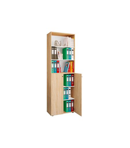 Regal und Schrank in einem: VCM my office Regalschrank 2XL Lona, 919150 sonoma-eiche 70,2 x 39,0 x 220,0 cmDer VCM my office Regalschrank 2XL Lona, 919150 sonoma-eiche 70,2 x 39,0 x 220,0 cm ist ein Muss für jeden anspruchsvollen Ordnungsliebhaber. Statten Sie Ihr Büro mit diesem praktischen Möbelobjekt aus! Der offen gestaltete Teil des Möbelstücks bieten einen schnellen Zugriff z.B. auf Ordner oder andere Artikel, die Sie gerne gut sichtbar und schnell griffbereit haben möchten. Des Weiteren wirkt das Möbelelement durch das teilweise offene Design in jedem Raum toll und lockert Ihre Einrichtung neben geschlossenen Exemplaren angenehm auf.Wichtiges zu Material und MerkmalenBeachten Sie auch die einzelnen Komponenten, die dieses Möbelobjekt auszeichnen, dazu gehört auch deren guten Eigenschaften. Das beständige Material Holzwerkstoff ist der Hauptbestandteil des Korpus. Die Stärke der Korpuswände beträgt 1,6 cm. Dank der Melaminharzbeschichtung ist die Oberfläche geschützt bei Stößen und lässt sich einfach reinigen.Die InnenaufteilungDas Möbelstück bietet Ihnen insgesamt 6 Fächer für die Aufbewahrung Ihrer Sachen. Wer seine Akten und Unterlagen übersichtlich aufgeräumt mag, ist mit diesem Möbelstück aufgrund der praktischen Fachböden gut beraten. Dieser Artikel bietet 4 Fachböden. Jeder Fachboden hat eine Tragkraft von 5,0 kg. Dank der Höhenverstellbarkeit können Sie Ihre Inneneinrichtung anpassen. Die Anzahl der Ordnerreihen, die Sie unterbringen können, ist sicherlich interessant. Ihre Ordner können Sie hier in 6 Reihen anordnen.Die TüröffnerDas Öffnen und Schließen funktioniert ganz bequem durch Knopfgriffe. Weiterlesen und noch mehr interessante Informationen zu diesem Artikel erhalten!Werfen Sie einen Blick auf folgende Maße: Breite: 70,2 cmTiefe: 39,0 cmHöhe: 220,0 cmEin weiterer wichtiger Wert ist das Gesamtgewicht – es beträgt 52,5 kg. Beim Kauf dieses Möbelobjekts erfolgt die Lieferung zerlegt.Weitere Produkte dieses Stils gewünscht?Sie benötigen eine vollständige, stilvolle Büroeinrichtung, die zu Ihren Bedürfnissen passt? Die Serie Lona bietet viele weitere dazugehörige Produkte dieses Designs.Die passende Ausstattung für Ihre Räume?Dann bestellen Sie den VCM my office Regalschrank 2XL Lona, 919150 sonoma-eiche 70,2 x 39,0 x 220,0 cm gleich hier in unserem Online-Shop! ...