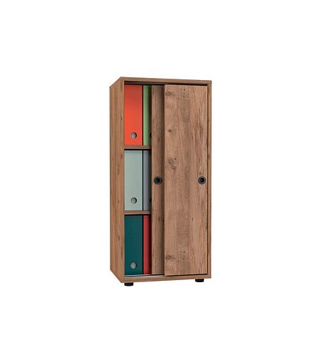 Übersichtlich und dekorativ – der VCM my office Schiebetürenschrank Ulas, 919822 honig-eiche 2 Fachböden 49,0 x 37,7 x 108,7 cmDer VCM my office Schiebetürenschrank Ulas, 919822 honig-eiche 2 Fachböden 49,0 x 37,7 x 108,7 cm ist für zusätzlichen Stauraum eine perfekte Lösung. Auch bei engsten Platzverhältnissen finden Sie genügend Stauraum. Denn dank der Schiebetüren braucht dieser Schranktyp wesentlich weniger Platz als andere Aufbewahrungssysteme.Welche Kriterien gibt es zu beachten?Nachfolgend erfahren Sie weitere wichtige Kriterien zu den Werkstoffen, die verbaut wurden: Der Korpus besteht aus Holzwerkstoff und hat ein zeitloses Design. 1,6 cm beträgt die Korpuswandstärke. Dank der Melaminharzbeschichtung ist die Oberfläche geschützt bei Stößen und lässt sich einfach reinigen. Haben Sie wenig Platz und es bedarf mehr Stauraum für Ihre Habseligkeiten? Dann stapeln Sie einfach hoch. Den VCM my office Schiebetürenschrank Ulas, 919822 honig-eiche 2 Fachböden 49,0 x 37,7 x 108,7 cm können Sie dank der stabilen Bauweise einfach übereinander platzieren.So öffnen Sie dieses MöbelobjektDie Lochgriffe sind ein optischer Blickfang, das Möbelstück wirkt damit hochwertig und edel. Die Griffe bestehen aus strapazierfähigem Kunststoff.Hier noch weitere Informationen zu diesem ProduktBeachten Sie die Maße dieses Modells: Das Außenmaß beträgt 49,0 x 37,7 x 108,7 cm (BxTxH). Das Gesamtgewicht ist nicht unwichtig und liegt bei 23 kg.Platz für 3 OrdnerreihenDer Ordnung zuliebe sind Fachböden sehr hilfreich. Dieser Artikel hat 2 Fachböden. Mit einer Tragkraft von 5,0 kg je Fachboden können Sie hier etliches abstellen. Jede Menge Platz für Ihre Ordnerablage: Ihre Ordner können Sie hier in 3 Reihen anordnen.Worauf Sie außerdem bauen könnenDie Zustellung dieses Möbelobjekts erfolgt zerlegt, doch der Aufbau ist kein Problem.Die passende Ausstattung für Ihre Räume?Ordern Sie den VCM my office Schiebetürenschrank Ulas, 919822 honig-eiche 2 Fachböden 49,0 x 37,7 x 108,7 cm doch gleich hier bei uns online! ...