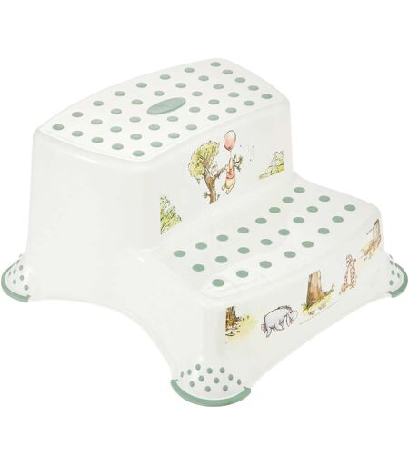 Für ein Plus an Selbstständigkeit: Der zweistufige Schemel Igor von keeeper hebt den Nachwuchs auf die richtige Höhe. So kann Dein Kind Waschbecken, Toilette und Co. ganz alleine erreichen. Winnie Puuh, I-Aah und Tigger unterstützen dabei. zweistufiger Schemel von keeeper mit kindgerechtem Winnie Puuh-, I-Aah- und Tigger-Print rutschhemmende Gumminoppen auf der Oberseite, Gummifüße an der Unterseite ca. 40,5(L) x 37(B) x 21(H) cm aus Kunststoff belastbar bis 120 kg Die rutschhemmenden Gumminoppen auf der Oberseite des zweistufigen Tritthockers sorgen für einen stabilen Stand. So steht Dein Mini beim Händewaschen oder Gang zur Toilette immer sicher – auch mit nassen Füßen. Die gummierte Unterseite des Tritthockers bietet zusätzliche Sicherheit. Dank des abgerundeten Designs, kann sich der Nachwuchs an keinen Ecken und Kanten stoßen. So werden der Komfort und die Sicherheit noch einmal erhöht. Der Tritthocker ist aus stabilem Kunststoff gefertigt, der besonders langlebig ist. Er ist bis 120 kg belastbar und kann damit sogar Erwachsene tragen. Dadurch lässt er sich unbegrenzt nutzen und prinzipiell in jedem Alter einsetzen. Dank seines pflegeleichten Materials kannst Du den Tritthocker ganz einfach mit einem feuchten Tuch abwischen oder unter fließendem Wasser abspülen. Neben seinen praktischen Features, kann der Tritthocker auch mit einem niedlichen Design punkten. Winnie Puuh, Tigger und I-Aah sorgen für eine kindgerechte Note und erfreuen Deinen Mini. ...
