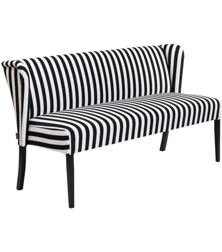 Polsterbank »Hendrick«, schwarz-weiß gestreift Farbe: Bezug schwarz-weiß gestreift Füße schwarz lackiert Material: Bezug 100% Polyester Gestell und Füße Buchen-Massivholz Sitz Gurtunterfederung, Polyätherschaum, Diolenabdeckung Rücken Spanngurte, Polyätherschaum, Diolenabdeckung Maße: B x H x T ca. 164 x 88 x 64 cm Sitzbreite ca. 164 cm Sitzhöhe ca. 49 cm Sitztiefe ca. 44 cm Rückenhöhe ca. 40 cm Bodenfreiheit ca. 33 cm Inhalt: Inkl. 4 Filzgleitern Gewicht: Ca. 34 kg Tragkraft: Je Sitz max. 120 kg Gebrauchsanweisung: - Mit einer feinen Polsterdüse leicht absaugen - Flecken sofort nach dem Entstehen beseitigen - Flüssigkeiten sofort mit einem saugfähigen Küchenpapier oder Tuch abtupfen – nicht reiben! Fetthaltige und säurehaltige Verschmutzungen mit lauwarmem, destilliertem Wasser großflächig, von Naht zu Naht, mit einem feuchten, sauberen Tuch, z.B. Geschirrtuch, oder einem sauberen Schwamm reinigen - Für eiweißhaltige Flecken (z.B. Blut) muss eiskaltes Wasser verwendet werden - Zur Fleckentfernung ist Feuchtigkeit notwendig - Auf keinen Fall feuchte Flecken oder Stellen mit dem Föhn bearbeiten, das Material könnte beschädigt werden - Nicht auf das Möbel im feuchten bzw. nassen Zustand setzen, das kann Dehnungen, Mulden oder Falten geben, die meist nicht mehr zu entfernen sind - Immer mindestens 1 bis 2 Tage vor Benutzung trocknen lassen - Niemals mit Lösungsmitteln arbeiten (z.B. Fleckenentferner, Terpentin, Benzin) und auf gar keinen Fall mit dem Dampfreiniger hantieren - Die Beseitigung von schwierigen Flecken (Kaugummi, Kugelschreiber etc.) ist ein Fall für den Fachmann Technische Details: Weiches Flachgewebe: 100% Polyester Scheuertouren: 75.000 Sonstige Hinweise: Artikel wird montiert geliefert Anlieferung bis zur Verwendungsstelle Keine Inselbelieferung Lieferzeit Deutschland und Österreich 15 Tage Hersteller und Garantiegeber: Max Winzer GmbH & Co. KG Großheirather Straße 1, 96253 Untersiemau info@max winzer.de Hersteller-Artikel-Nummer: 1364-1601-1600840-F09 Das markante schwarz-weiß gestreifte Flachgewebe verleiht dem Sofa den typischen Charme der 80sKüchensofa in klassischem Design in angedeutetem OhrenbackenstilAufwendige handwerkliche VerarbeitungPerfekt an Esstischhöhe angepasstBequeme PolsterungPerfekte Alternative zu einzelnen PolsterstühlenUmlaufend bezogen – auch frei im Raum stellbarStrapazierfähiges, weiches FlachgewebeFüße aus erlefarben lackiertem Buchen-MassivholzExklusiv für TchiboHersteller: Max Winzer®MADE IN GERMANY ...