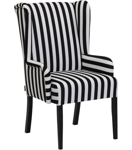 Hochlehner-Polsterstuhl mit Armlehne »Hendrick«, schwarz-weiß gestreift Farbe: Bezug schwarz-weiß gestreift Füße schwarz lackiert Material: Bezug 100% Polyester Gestell Buchen-Massivholz Sitz Gurtunterfederung, Polyätherschaum, Diolenabdeckung Rücken Spanngurte, Polyätherschaum, Diolenabdeckung Füße Buchen-Massivholz Maße: B x H x T ca. 62 x 107 x 64 cm Sitzbreite ca. 51 cm Sitzhöhe ca. 49 cm Sitztiefe ca. 44 cm Rückenhöhe ca. 62 cm Armlehnenhöhe ca. 14 cm Bodenfreiheit ca. 33 cm Inhalt: Inkl. 4 Filzgleitern Gewicht: Ca. 14 kg Tragkraft: Max. 120 kg Gebrauchsanweisung: - Mit einer feinen Polsterdüse leicht absaugen - Flecken sofort nach dem Entstehen beseitigen - Flüssigkeiten sofort mit einem saugfähigen Küchenpapier oder Tuch abtupfen – nicht reiben! Fetthaltige und säurehaltige Verschmutzungen mit lauwarmem, destilliertem Wasser großflächig, von Naht zu Naht, mit einem feuchten, sauberen Tuch, z.B. Geschirrtuch, oder einem sauberen Schwamm reinigen - Für eiweißhaltige Flecken (z.B. Blut) muss eiskaltes Wasser verwendet werden - Zur Fleckentfernung ist Feuchtigkeit notwendig - Auf keinen Fall feuchte Flecken oder Stellen mit dem Föhn bearbeiten, das Material könnte beschädigt werden - Nicht auf das Möbel im feuchten bzw. nassen Zustand setzen, das kann Dehnungen, Mulden oder Falten geben, die meist nicht mehr zu entfernen sind. Immer mindestens 1 bis 2 Tage vor Benutzung trocknen lassen - Niemals mit Lösungsmitteln arbeiten (z.B. Fleckenentferner, Terpentin, Benzin) und auf gar keinen Fall mit dem Dampfreiniger hantieren - Die Beseitigung von schwierigen Flecken (Kaugummi, Kugelschreiber etc.) ist ein Fall für den Fachmann Technische Details: Weiches Flachgewebe: 100% Polyester Scheuertouren: 75.000 Sonstige Hinweise: Artikel wird montiert geliefert Anlieferung bis zur Verwendungsstelle Keine Inselbelieferung Lieferzeit Deutschland und Österreich 15 Tage Hersteller und Garantiegeber: Max Winzer GmbH & Co. KG Großheirather Straße 1, 96253 Untersiemau info@max winzer.de Hersteller-Artikel-Nummer: 1364-1140-1600840-F09 Das markante schwarz-weiß gestreifte Flachgewebe verleiht dem Sofa den typischen Charme der 80sKlassisches Design im OhrenbackenstilAufwendige handwerkliche Verarbeitung mit umlaufend aufgepolstertem Arm- und Rückenteil sowie dekorativer KedernahtPerfekt an Esstischhöhe angepasstBequeme PolsterungBesonders komfortabel durch die hohe RückenlehneStrapazierfähiges, weiches FlachgewebeFüße aus erlefarben lackiertem Buchen-MassivholzExklusiv für TchiboHersteller: Max Winzer®MADE IN GERMANY ...