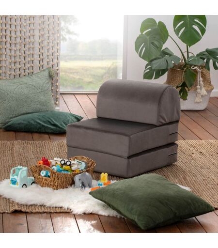 Der Kinder-Faltsessel Cosmos mini von Max Winzer bietet Deinem Kind einen komfortablen Platz. Ausgeklappt ist das Design als praktisches Gästebett verwendbar. Lieferumfang: Kinder-Faltsessel Cosmos mini von Max Winzer Material: PUR-Schaum, Textil Verwendung: Kindersessel, Kinder-Gästebett Belastbarkeit: Mindestbelastbarkeit 40 kg Maße: 40(B) x 50(T) x 44(H) cm, Sitzfläche 40(B) x 26(T) cm, Sitzhöhe 23 cm, Rückenhöhe 21 cm, Liegefläche 100(L) x 40(B) cm Gewicht: 2 kg Der Kinder-Faltsessel Cosmos mini von Max Winzer bietet Deinem Kind einen komfortablen Platz zum Spielen und Entspannen. Dein Kleines kann auf der weichen Sitzfläche Platz nehmen und sich gemütlich anlehnen. Eine Antirutschmatte an der Unterseite des Sessels hält ihn auch auf glatten Böden zuverlässig an seinem Platz. Besonders cool: Mit wenigen Handgriffen lässt sich der Sessel auseinanderklappen und in ein praktisches Gästebett verwandeln. Die Liegefläche ist 100 Zentimeter lang und 40 Zentimeter breit. Gratis Stoffmuster Du kannst hier gratis Stoffmuster direkt beim Hersteller anfordern. ...