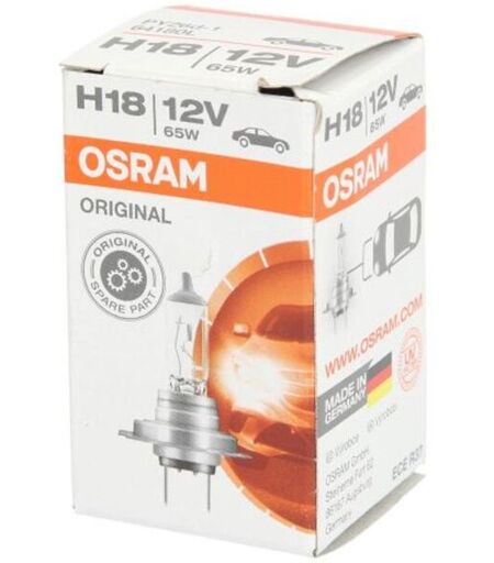 Art der Glühlampe: H18. Hersteller: OSRAM. Herstellernummer: 64180L. Index: OSR64180L. Lampentyp: Halogen. Linie: Standard. Nennleistung [W]: 65. Spannung [V]: 12. Steckdosentyp: PY26D-1. Stückzahl : 1. Verpackung: Karton. ...