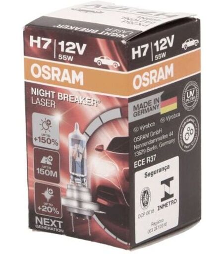 Art der Glühlampe: H7. Hersteller: OSRAM. Herstellernummer: 64210NL. Index: OSR64210 NL. Lichtfarbe: weiß. Linie: Night Breaker Laser. Nennleistung [W]: 55. Spannung [V]: 12. Steckdosentyp: PX26D. Stückzahl : 1. Verpackung: Karton. ...