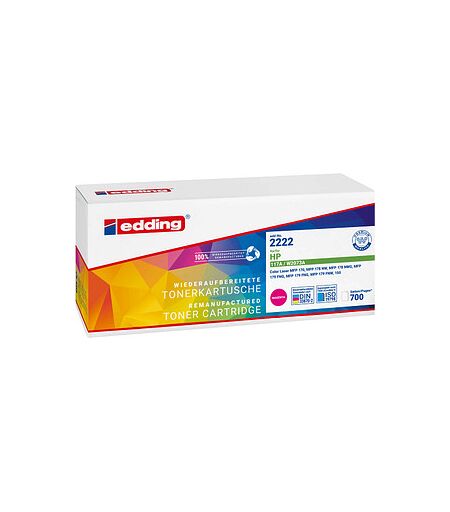 Sie haben kein Druckmittel mehr? – Sorgen Sie mit dem edding EDD-2222 magenta Toner kompatibel zu HP 117A (W2073A) für Abhilfe!Was Sie vor dem Kauf wissen müssen, ist: Passt der edding EDD-2222 magenta Toner kompatibel zu HP 117A (W2073A) in Ihr Druckermodell? Sofern Sie dieses Gerät nutzen, so lautet die Antwort ja: HP Color Laser MFP 170 Series/ 150 SeriesHaben Sie einen Volltreffer gelandet? Dann sind sicherlich auch die weiteren Eigenschaften des Produkts interessant für Sie.Die günstige Alternative, aber Druckergebnisse wie beim OriginalMit dem edding EDD-2222 magenta Toner kompatibel zu HP 117A (W2073A) erwerben Sie ein mit den Geräten des Originalherstellers kompatibles Produkt. In Sachen Leistung und Qualität müssen Sie dadurch keinerlei Abstriche machen. Freuen Sie sich also auf hochwertige Ergebnisse zum kleinen Preis!Druckleistung: 700 SeitenGanz gleich, ob Sie sehr viele Seiten oder nur gelegentlich drucken. Die Druckleistung gibt Ihnen eine verlässliche Orientierung zur Anzahl der Seiten, die Sie drucken können. Sie beträgt hier nach ISO/IEC 19798 ca. 700 Seiten. Das hilft Ihnen, Ihre Druckkosten unter Kontrolle zu halten. Verlassen Sie sich auf ein gutes ProduktDie Benutzung der Komponente beeinträchtigt nicht die Garantieleistung Ihres Geräts. Sollte ein Schaden entstehen, der nachweislich dem verwendeten edding-Druckmittel geschuldet ist, so übernimmt edding die Garantieleistungen vom Original-Hersteller.Das Unternehmen eddingHinter der Marke edding steht das gleichnamige Unternehmen, das hauptsächlich für seine Marker, aber auch viele weitere Produkte weltweit bekannt ist. Der Umweltschutz ist dem Unternehmen besonders wichtig und angefallene Abfallprodukte der Produktion werden nicht einfach entsorgt, sondern als wertvoller Rohstoff betrachtet. Auch für die fertigen Produkte selbst wurden spezielle Nachfüllsysteme und Ersatzspitzen geschaffen. Das verlängert die Nutzungsdauer immens.Haben die Vorzüge des Produkts Sie überzeugt?Dann packen Sie den edding EDD-2222 magenta Toner kompatibel zu HP 117A (W2073A) jetzt ganz einfach in Ihren Warenkorb! ...