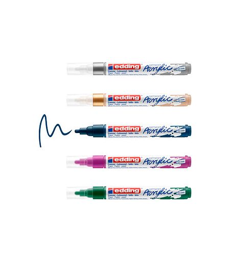 Dekorativ gestalten – der edding 5100 festlich Acrylstift farbsortiert 2,0 - 3,0 mm, 1 SetDas Malen und Zeichnen mit dem edding 5100 festlich Acrylstift farbsortiert 2,0 - 3,0 mm, 1 Setdem edding 5100 festlich Acrylstift farbsortiert 2,0 - 3,0 mm, 1 Set ist sehr beliebt. Einfach in der Verarbeitung und bestens für Anfänger und auch für Profis geeignet. Die ergiebige und deckende Tinte ist ein sehr dankbares Malmaterial, mit dem sich einfach und sauber arbeiten lässt. Die Stärken liegen in der hohen Farbbrillanz und den vielfältigen Einsatzmöglichkeiten. Besonders für kreative Projekte eignet er sich sehr gut. Ideal geeignet ist das Produkt für Holz, Leinwand, Papier, Pappe/Karton.Ist komfortabel zu greifenFür Ihre Projekte bekommen Sie die Farben silber matt, elegant nachtblau matt, reichgold matt, moosgrün matt und beere matt. Mit diesen ansprechenden und beliebten Farben macht es besonders Spaß. Die runde Griffzone fühlt sich angenehm an und ermöglicht eine flexible Handhaltung. Dadurch passt das Modell zu jeder Schreibhaltung.Mit welcher Spitze der edding Acrylstift 5100 festlich ausgestattet?Dadurch, dass die Spitze gleichmäßig rund ist, gewährleistet sie flüssiges, angenehmes Schreiben und Markieren. Hierbei erzeugt die Spitze die Strichstärke 2,0 - 3,0 mm. Es gibt auch die Möglichkeit, die Spitze zu ersetzen. Sie können Ersatzspitzen einfach und bequem nachbestellen.Für empfindliche Nasen: geruchsarmDie geruchsarme Tinte mindert das Risiko von Kopfschmerzen, Übelkeit sowie Reizungen der Atemwege, die zumeist durch stark riechende Lösungsmittel hervorgerufen werden.Bleibt lange farbintensivDie Tinte ist lichtbeständig, sodass sie selbst nach langer Zeit nicht verblasst.Wasserfest und permanentSie möchten den Marker für dauerhafte Beschriftungen nutzen und z.B. Oberflächen beschreiben, die eventuell feucht werden können? Kein Problem, denn die Tinte ist wasserfest und somit beständig gegen Feuchtigkeit.Das Modell entspricht Ihren Anforderungen?Sie werden von der Qualität "Made in Germany" begeistert sein. Sie brauchen ein zuverlässiges Schreib- und Malutensil? Dann bestellen Sie den edding 5100 festlich Acrylstift farbsortiert 2,0 - 3,0 mm, 1 Set gleich hier in unserem Online-Shop. ...
