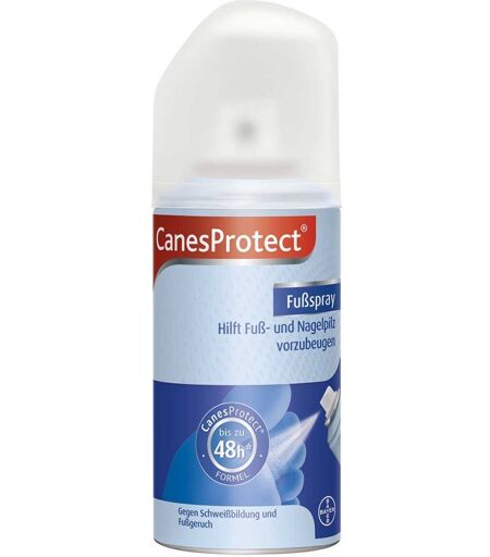 Das CanesProtect Fussspray aus dem Hause Canesten ist ein schweißhemmendes und antimikrobielles Spray für Füße, die zu Fußpilz oder Nagelpilz neigen. Die innovative CanesProtect®-Formel kombiniert Substanzen mit schweißhemmenden und antimikrobiellen Eigenschaften, die Ihre Füße gegen unangenehmen Geruch und übermäßiges Schwitzen schützen. Die Formulierung bekämpft geruchsbildende Bakterien aufgrund ihrer antimikrobiellen Eigenschaften, während das Antitranspirant Füße bis zu 48 Stunden* lang trockener und frisch hält. CanesProtect® sorgt somit für eine gesunde Fußumgebung und hilft so, Fuß- und Nagelpilz vorzubeugen. Im Anschluss an eine erfolgreiche Behandlung von Fuß- oder Nagelpilz mit Canesten® EXTRA eignet sich das CanesProtect® Fußspray ideal, um einer erneuten Entstehung vorzubeugen.