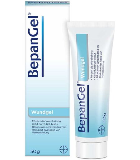 Die Versorgung kleiner, oberflächlicher Wunden ist mit Bepangel Wundgel von Bepanthen ganz einfach. BepanGel® Wundgel ist ein Hydrogel, welches die Feuchtigkeit und den pH-Wert von Wunden optimiert und so die Wundheilung fördert. Somit wird das Risiko von Narbenbildung reduziert. Die leichte Gel-Textur kühlt und lindert so den empfundenen Schmerz. Ein dünn aufgetragener Gel-Film schützt dabei vor weiteren Infektionsrisiken. Das Gel ist vegan und ist mit bis zu 36 Monaten nach Anbruch sehr lange haltbar.