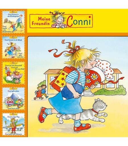 "Quirlig und selbstbewusst geht die fünfjährige Conni durchs Leben. Mal gibt sie einem kleinen Kätzchen ein neues Zuhause, dann muss sie zum ersten Mal zum Zahnarzt, oder die Seepferdchen-Prüfung im Schwimmkurs steht kurz bevor. Zusammen mit ihren Freunden Anna und Simon geht sie in den Kindergarten und erlebt auch dort jede Menge Abenteuer. Geduldig und liebevoll sind Connis Eltern immer zur Stelle und beantworten jede Frage. Am Ende einer jeden Folge hat Conni stets etwas gelernt und ist ein bisschen besser gewappnet für alles, was noch kommt. Die ""Conni"" 5-CD Box enthält diese 10 Hörspielgeschichten aus der Erfolgsserie: CD 1: Conni kommt in den Kindergarten / Conni macht das Seepferdchen CD 2: Conni kommt in die Schule / Conni geht zum Arzt CD 3: Conni auf dem Bauernhof / Conni und das neue Baby CD 4: Conni geht zelten / Conni lernt reiten CD 5: Connis erster Flug / Conni geht zum Zahnarzt Gesamtspielzeit: ca. 205 Minuten" ...