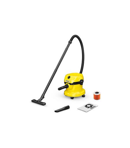Der KÄRCHER WD 2 PLUS V-12/4/18/C Nass-/Trockensauger 1.000 W – saugstark und effizientEgal ob Holzspäne oder Flüssigkeiten – kein Problem für den KÄRCHER WD 2 PLUS V-12/4/18/C Nass-/Trockensauger 1.000 W, denn er kann viele Arten von Schmutz zuverlässig beseitigen. Dieses Multitalent möchten Sie in Garten, Wohnung, in der Werkstatt oder anderswo nicht mehr missen.Einfach wegblasen!Dieser Reinigungshelfer ist mit einer nützlichen Blasfunktion ausgestattet. Gerade im Herbst, wenn viel Laub anfällt, kann damit allerlei Blattwerk und Unrat an gewünschte Stellen zusammengedrängt und spielend leichtentfernt werden.Einfach zu handhabenDer KÄRCHER WD 2 PLUS V-12/4/18/C Nass-/Trockensauger 1.000 W macht es Ihnen mit einem geringen Gewicht von 4,3 kg besonders leicht. Weitere Werte des Modells: Farbe: Gelb/schwarzMaße: 32,8 x 34,9 x 37,8Bequeme NutzungZur Nutzung steht Ihnen ein Radius von 1,8 m zur Verfügung. Motor mit 1.000 WDie Nennleistungsaufnahme des KÄRCHER WD 2 PLUS V-12/4/18/C Nass-/Trockensaugers 1.000 W liegt bei 1.000 W. Für welchen Einsatz ist das Gerät geeignet?Benötigen Sie ein Gerät, welches in unterschiedlichen Bereichen zum Einsatz kommen kann? Dann ist der KÄRCHER WD 2 PLUS V-12/4/18/C Nass-/Trockensauger 1.000 W optimal geeignet. Sie können Auto, Polster, Teppich, Matratzen, Hartböden, PVC, Fliesen, Laminat, Parkett zuverlässig und gründlich reinigen.Kapazität des AuffangbehältersDie zwei passen einfach hervorragend zusammen: die Kärcher KFI 357-Beutel und der KÄRCHER WD 2 PLUS V-12/4/18/C Nass-/Trockensauger 1.000 W. So kann nichts schief gehen! Das Auffangvolumen liegt bei 12 l.Was den KÄRCHER WD 2 PLUS V-12/4/18/C Nass-/Trockensauger 1.000 W so besonders machtFolgende besonderen Eigenschaften bietet der KÄRCHER WD 2 PLUS V-12/4/18/C Nass-/Trockensauger 1.000 W: Zubehöraufbewahrung am Gerät und am Gerätekopf, Ablagefläche für Kleinteile.Erleben Sie Sauberkeit ohne Kompromisse!Saugschlauch, 2 x Saugrohre, Nass-/Trockensaugdüse, Fugendüse, Vliesfilterbeutel, Patronenfilter gibt es bei Kauf des KÄRCHER WD 2 PLUS V-12/4/18/C Nass-/Trockensaugers 1.000 W mit dazu. ...