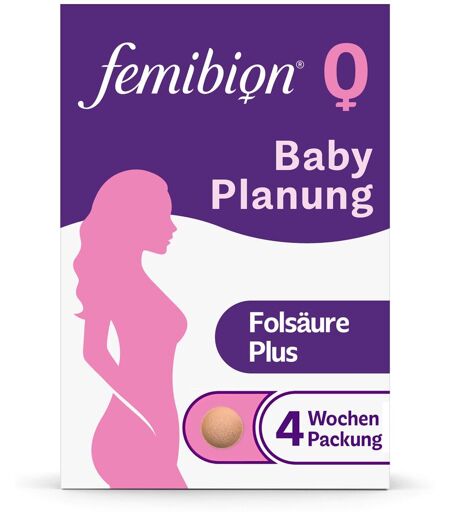 Nahrungsergänzungsmittel sind kein Ersatz für eine abwechslungsreiche und ausgewogene Ernährung und eine gesunde Lebensweise.Femibion® 0 BabyPlanungVITAMINE FÜR DIE ZEIT VOR DER SCHWANGERSCHAFT MIT FOLSÄURE PLUS (Folsäure & LMethylfolat) ²: Zum Aufbau des Folatspiegels vor der Schwangerschaft, Folsäure für die gesunde Entwicklung deines Babys¹ ZUGESCHNITTENE NÄHRSTOFFKOMBINATION: Folsäure Plus (Folsäure & L-Methylfolat)² zur Erhöhung des Folatspiegels, Zink zur Unterstützung normaler Fruchtbarkeit⁶, Selen zur Unterstützung des Zellschutzes⁷ Entwickelt für die gesunde Entwicklung deines Babys¹ Ausgewählte Vitamine und Mineralstoffe in nur einer Tablette täglich Frei von: Gluten, Laktose sowie genetisch veränderten OrganismenJEDERZEIT STARTEN: Mit Femibion® 0 kann an jedem Tag des Zyklus begonnen werden, auch an fruchtbaren Tagen; Empfehlung: Beginn der Nahrungsergänzung durch Folsäure mind. 1 Monat vor Schwangerschaft¹Die ergänzende Aufnahme von Folsäure erhöht bei Schwangeren den Folatspiegel. Ein niedriger Folatspiegel bei Schwangeren ist ein Risikofaktor für die Entstehung von Neuralrohrdefekten beim heranwachsenden Fötus. Dafür sollten zusätzlich täglich 400 μg Folsäure über einen Zeitraum von mindestens einem Monat vor und bis zu drei Monaten nach der Empfängnis eingenommen werden. Ein Neuralrohrdefekt ist durch mehrere Risikofaktoren bedingt. Die Veränderung eines Risikofaktors kann eine positive Wirkung haben oder auch nicht. ²Folsäure Plus ist eine Kombination aus Folsäure und L-Methylfolat. L-Methylfolat ist eine Form von Folat, die direkt vom Körper verwertet werden kann und hilft, den Folatspiegel zu erhöhen³, der für die gesunde Entwicklung deines Babys¹ wichtig ist. ³Obeid R et al. Eur J Nutr. 2018;57(5):1771-1780 ⁶Zink trägt zu einer normalen Fruchtbarkeit und Fortpflanzung bei. ⁷Selen trägt zum Schutz der Zellen vor oxidativem Stress bei.Zutaten: Füllstoff: Cellulose; Emulgator: Gummi arabicum; Zucker; DL-α-Tocopherylacetat (Vitamin E); Stärke; Überzugsmittel: Hydroxypropylcellulose,Hydroxypropylmethylcellulose; Trennmittel: Siliciumdioxid; Füllstoff: Hydroxypropycellulose; Maltodextrin; Glukosesirup; Modifizierte Stärke; Antioxidationsmittel: Calciumascorbat; Pyridoxinhydrochlorid (Vitamin B6); Trennmittel: Dicalciumphosphat, Magnesiumsalze der Speisefettsäuren; Riboflavin (Vitamin B2); Calcium-L-methylfolat (Metafolin®); Pteroylmonoglutaminsäure (Folsäure); Kaliumiodid; Farbstoff: Eisenoxide und Eisenhydroxide; Cholecalciferol (Vitamin D); Cyanocobalamin (Vitamin B12).Nährwerte:Durchschnittliche Nährwerte:Pro Tablette% Referenzmenge*FolatFolsäureL-Methylfolat**800 µg400 µg416 µg400 %Vitamin B21,4 mg100 %Vitamin B61,4 mg100 %Vitamin B122,5 µg100 %Vitamin D20 µg400 %Vitamin E (?-TE)2,4 mg20%Jod150 µg100 %* % der Referenzmenge für die tägliche Zufuhr (EU) ** aus Metafolin (entsprechen 400 ?g Folsäure)Verzehrempfehlung:1 Tablette pro Tag zu einer der Mahlzeiten mit ausreichend kalter Flüssigkeit einnehmen.Hinweis:Die... ...