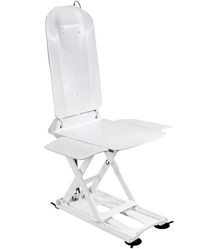 Einfach rein in die Wanne… Mit einem Wannenlifter kein Problem! Einfach Platz nehmen und Knopf drücken. Und schon geht’s per Scherenhub stufenlos runter – und auch wieder rauf. Mit hautfreundlicher und rutschsicherer Oberfläche. Rückenlehne absenkbar bis 40°. Belastbar bis 140 kg. Zerlegbar in 2 Hauptbestandteile. 220 Volt. Handsteuerung mit Spiralkabel, inklusive Akku und Ladegerät. Für alle handelsüblichen Badewannengrößen geeignet. Material: Gestell: Kunststoff Bezüge: Polyurethanschaum Maße: Sitzbreite: 37,5 cm; mit Seitenklappen 71 cm Sitztiefe: 50 cm Sitzhöhe: 6,5 - 45 cm Rückenlehne: 35 x 68 cm Gesamthöhe: 110,5 cm Bodenplatte: 53 x 20 cm Gewicht: ca. 11 kg ...