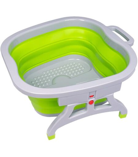Wenn nach einem langen Tag auf den Beinen die Füße schmerzen, ist ein Fußbad genau das richtige. Alles, was es dazu braucht, sind etwas warmes Wasser, ein wohltuendes Pflegeöl und natürlich ein passendes Gefäß wie diese faltbare Fußpflege-Wanne. Das pfiffige Platzspar-Wunder entfaltet sich mit wenigen Handgriffen zu einer vollwertigen Wellness-Oase für müde und gestresste Füße. Einmal reingeschlüpft, möchte man am liebsten gar nicht mehr raus. Dafür sorgen unter anderem die am Boden der Wanne angebrachten Massagenoppen und Massagebögen. Sie kombinieren das ohnehin schon herrlich entspannende Fußbad mit einer wohltuenden Reflexzonenmassage. Um den Füßen eine wohlverdiente Auszeit zu gönnen, werden die Seitenteile des in modernem hellgrün und grau gestalteten Wellness-Pools einfach ausgeklappt und der Boden nach unten gedrückt. Sobald die Seiten eingerastet sind, kann auch schon das Wasser eingelassen werden. Jetzt heißt es: rein mit den Füßen, zurücklehnen und entspannen! Für einen sicheren Stand auf glatten Untergründen wie Fliesen oder Laminat sorgen währenddessen die vier rutschfesten Gummifüße. Ist das Fußbad getrocknet, genügt es auf die roten Knöpfe an den Seitenteilen zu drücken, um es wieder platzsparend zusammenzufalten.Im zusammengefalteten Zustand ist das Fußbad gerade einmal sechs Zentimeter breit. So passt es in jede Nische und jeden Schrank und lässt sich sogar problemlos mit auf Reisen nehmen. Zum Beispiel mit dem Wohnmobil oder Wohnwagen, wo Platz ein wertvolles Gut ist und zusammenklappbare Gegenstände wie dieser Falt-Pool für die Füße willkommen sind. Denn was gibt es schöneres, als sich im Urlaub nach einem Tag am Strand oder einer langen Wanderung ein entspannendes Fußbad einzulassen. Dank des integrierten Haltegriffs, der bei Bedarf auch als Handtuchhalter dient, lässt sich der Wellness-Pool jederzeit schnell hervorholen und auch genauso einfach wieder wegräumen. ...