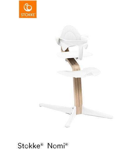 Der Stokke Nomi-Hochstuhl kann ein Leben lang verwendet werden. Dank seiner stufenlosen Verstellbarkeit passt er sich an jede Lebensphase optimal an. Das Sitzen auf Augenhöhe erleichtert Deinem Kind die Interaktion bei Tisch. Die Fußstütze sorgt für Stabilität. Das skandinavische Design mit Eiche/Buche-Furnier und Kunststoffkontrasten begeistert schon auf den ersten Blick. Jetzt im praktischen Bundle mit Baby-Set erhältlich. Altersempfehlung: ab 3 Jahren; ab Geburt mit Newborn-Set (separat erhältlich); ab 6 Monaten mit Baby-Set; belastbar bis 110 kg Material: Mittelträger Eiche/Buche-Furnier, Rückenlehne, Sitz, Fußstütze und Fußkreuz: Polypropylen, Schrauben Metall Verstellbarkeit: stufenlose Anpassung Sicherheit: kippsichere Rollen Baby-Set: ideale Seiten- und Rückenstütze, mit Durchrutschschutz, einfach am Stuhl anzuklicken, aus recycelbarem Kunststoff, ab 6 Monaten geeignet Lieferumfang: Hochstuhl-Montage-Set Nomi von Stokke inkl. Rückenlehne, Mittelträger, Fußkreuz, Fußplatte, Sitz, Baby-Set Dank seiner stufenlosen Anpassung ohne zusätzliches Werkzeug bietet der Hochstuhl einen ergonomischen Sitz in jeder Phase des Lebens. Die perfekte Ergänzung für den Anfang sind das Newborn-Set, das Baby-Set und das Sitzkissen des gleichnamigen Herstellers. Ohne das Zubehör ist er ab drei Jahren geeignet. Peter Opsvik hat Nomi basierend auf der gleichen Idee wie den Stuhl Tripp Trapp kreiert: Dein Mini kann die Mahlzeiten entspannt, auf Augenhöhe und interaktiver wahrnehmen. Zugleich fällt es ihm leichter, sich auf die Aktivitäten rund um den Tisch zu konzentrieren. Die physische Umgebung wird sozusagen an die Größe des Kindes und seine Bedürfnisse angepasst. Die stabile Fußstütze sorgt für zusätzlichen Komfort. Auch sie lässt sich entsprechend des Wachstum verstellen. Die Tiefe wird automatisch angepasst, wenn Du die Höhe von Sitz und Fußstütze fixierst. Der Mittelträger verleiht dem Hochstuhl eine stabile Festigkeit, eine lange Haltbarkeit und große Flexibilität. Aufgrund seines geringen Gewichts lässt sich der Stuhl überall und in jedem Zimmer verwenden. Mit den leichtlaufenden Rollen gestaltet sich der Transport von einem Raum in den nächsten unkompliziert. Besonders praktisch: Zur Reinigung des Bodens nach dem Essen kannst Du ihn an der Tischkante aufhängen. Der Stuhl kann mit bis zu 110 Kilogramm belastet werden. Sein klares nordisches Design fügt sich in zahlreiche Wohnambientes perfekt ein. Der Mittelträger des Hochstuhls wird aus Eiche/Buche-Furnier gefertigt. So ergibt sich ein markanter Kontrast zu den farblich abgesetzten Elementen von Rückenlehne, Sitz, Fußstütze und Fußkreuz. Wie ein schützender Arm legt sich das Baby-Set um Deinen Nachwuchs. Die Komponenten verfügen über eine Seiten- und eine Rückenstütze. So sitzt das Kind ergonomisch und sicher. Der praktische Durchrutschschutz verhindert Extratouren und ein Hinabgleiten Deines Kindes. Das Set ist im Handumdrehen am Hochstuhl angeklickt. Es ist nachhaltig aus recycelbarem... ...