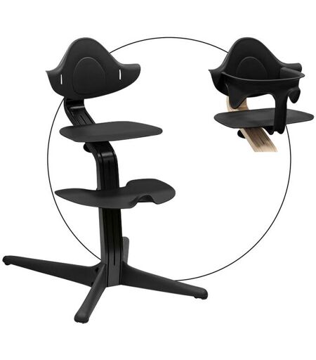Der Stokke Nomi-Hochstuhl kann ein Leben lang verwendet werden. Dank seiner stufenlosen Verstellbarkeit passt er sich an jede Lebensphase optimal an. Das Sitzen auf Augenhöhe erleichtert Deinem Kind die Interaktion bei Tisch. Die Fußstütze sorgt für Stabilität. Das skandinavische Design mit Eiche/Buche-Furnier und Kunststoffkontrasten begeistert schon auf den ersten Blick. Jetzt im praktischen Bundle mit Baby-Set erhältlich. Altersempfehlung: ab 3 Jahren; ab Geburt mit Newborn-Set (separat erhältlich); ab 6 Monaten mit Baby-Set; belastbar bis 110 kg Material: Mittelträger Eiche/Buche-Furnier, Rückenlehne, Sitz, Fußstütze und Fußkreuz: Polypropylen, Schrauben Metall Verstellbarkeit: stufenlose Anpassung Sicherheit: kippsichere Rollen Baby-Set: ideale Seiten- und Rückenstütze, mit Durchrutschschutz, einfach am Stuhl anzuklicken, aus recycelbarem Kunststoff, ab 6 Monaten geeignet Lieferumfang: Hochstuhl-Montage-Set Nomi von Stokke inkl. Rückenlehne, Mittelträger, Fußkreuz, Fußplatte, Sitz, Baby-Set Dank seiner stufenlosen Anpassung ohne zusätzliches Werkzeug bietet der Hochstuhl einen ergonomischen Sitz in jeder Phase des Lebens. Die perfekte Ergänzung für den Anfang sind das Newborn-Set, das Baby-Set und das Sitzkissen des gleichnamigen Herstellers. Ohne das Zubehör ist er ab drei Jahren geeignet. Peter Opsvik hat Nomi basierend auf der gleichen Idee wie den Stuhl Tripp Trapp kreiert: Dein Mini kann die Mahlzeiten entspannt, auf Augenhöhe und interaktiver wahrnehmen. Zugleich fällt es ihm leichter, sich auf die Aktivitäten rund um den Tisch zu konzentrieren. Die physische Umgebung wird sozusagen an die Größe des Kindes und seine Bedürfnisse angepasst. Die stabile Fußstütze sorgt für zusätzlichen Komfort. Auch sie lässt sich entsprechend des Wachstum verstellen. Die Tiefe wird automatisch angepasst, wenn Du die Höhe von Sitz und Fußstütze fixierst. Der Mittelträger verleiht dem Hochstuhl eine stabile Festigkeit, eine lange Haltbarkeit und große Flexibilität. Aufgrund seines geringen Gewichts lässt sich der Stuhl überall und in jedem Zimmer verwenden. Mit den leichtlaufenden Rollen gestaltet sich der Transport von einem Raum in den nächsten unkompliziert. Besonders praktisch: Zur Reinigung des Bodens nach dem Essen kannst Du ihn an der Tischkante aufhängen. Der Stuhl kann mit bis zu 110 Kilogramm belastet werden. Sein klares nordisches Design fügt sich in zahlreiche Wohnambientes perfekt ein. Der Mittelträger des Hochstuhls wird aus Eiche/Buche-Furnier gefertigt. So ergibt sich ein markanter Kontrast zu den farblich abgesetzten Elementen von Rückenlehne, Sitz, Fußstütze und Fußkreuz. Wie ein schützender Arm legt sich das Baby-Set um Deinen Nachwuchs. Die Komponenten verfügen über eine Seiten- und eine Rückenstütze. So sitzt das Kind ergonomisch und sicher. Der praktische Durchrutschschutz verhindert Extratouren und ein Hinabgleiten Deines Kindes. Das Set ist im Handumdrehen am Hochstuhl angeklickt. Es ist nachhaltig aus recycelbarem... ...