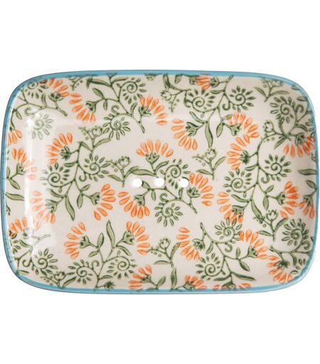 tranquillo Seifenschale 'FLORAL' weiß/grün/orange, aus Steinzeug, rechteckig; 13.5x2x9.5 cm (BxHxT); grün/orange/blau/creme; rechteckig