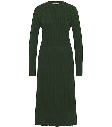 Damen Midikleid aus reiner Bio-Baumwolle Rundhalsausschnitt Langarm Rippstrick Unifarben Schmale Passform Midilänge Farbbezeichnung: Forest Material: 100% Bio-Baumwolle ...