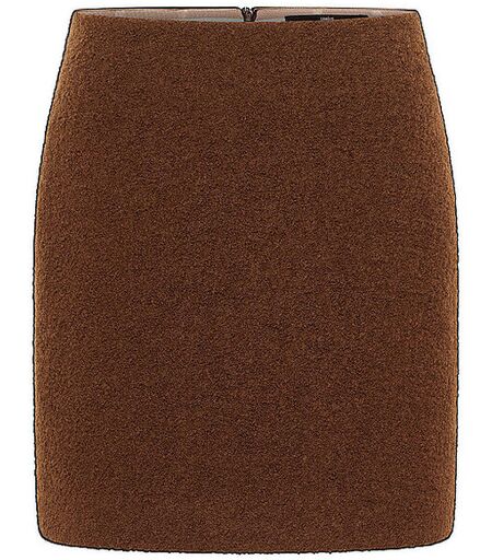 Damen Minirock aus Boucle Schließt mit Reißverschluss auf der Rückseite Unifarben Schmale Passform Kurz geschnitten Farbbezeichnung: Brown Material: 100% Bio-Schurwolle ...