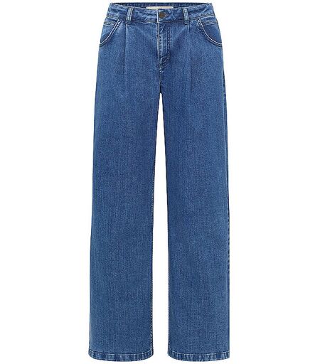 Damen Marlenejeans aus Denim Mit Bundfalten Mittlere Leibhöhe 5-Pocket-Style Weites Bein Farbbezeichnung: Mid Blue Material: 92% Baumwolle, aus kontrolliert biologischem Anbau, 2% Elasthan, 6% Elastomultiester ...