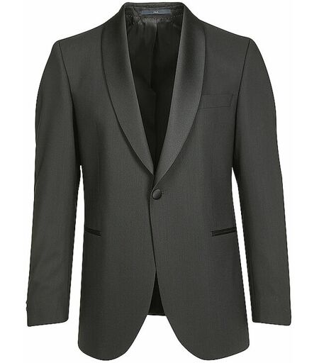 Edles Herren-Smokingsakko Feines Gewebe aus hochwertiger Schurwolle Schal-Revers aus glänzendem Satin Einreiher-Sakko mit gezwirnten Einknopf-Verschluss Paspelierte Eingrifftaschen Farbe: Schwarz Ärmelmanschette mit vier Knöpfen Formgebende Abnäher Innentaschen Material: 100% Schurwolle Futter: 100% Cupro ...