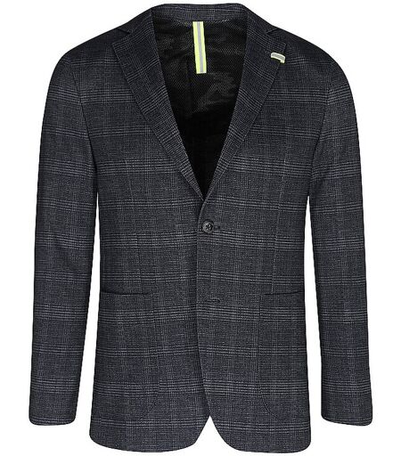 Herren Sakko im sportlichen Look Reverskragen Langarm Zweifach geknöpft Karo-Print Zwei Saumschlitze hinten Reflektor-Detail Air-Mesh Futter im Tarnmuster Innentaschen Casual Fit Farbbezeichnung: Stimmungsblau Material: 61% Polyester, 35% Viskose, 4% Elasthan ...