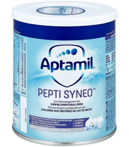 Mit seinem hochhydrolysierten Protein und dem patentierten Syneo-Komplex eignet es sich zur diätetischen Führung bei Kuhmilcheiweißallergie.