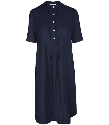 Kleo von Felicitas ist ein Kurzarmkleid aus Leinen. Parallel der Knopfleiste verlaufen Biesen mit Riegel in Taillenhöhe. Das Kleid hat einen Stehkragen und einen abgerundeten Saum. Der Rückenteil wird durch einen Sattel mit Falte betont. Designed in Österreich - genäht in Europa! Damen Kleid aus Leinen Kurzarm Unifarben Länge: 90 cm Lockere Passform Farbbezeichnung: Marine Material: 100% Leinen ...