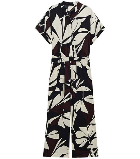 Sommerlicher Damen Jumpsuit aus reiner Viskose Schmaler Stehkragen Schließt mit verdeckter Knopfleiste Kurzarm Elastischer Gummizug in der Taille Seitliche Eingrifftaschen Weiter Beinverlauf Farbbezeichnung: Black Material: 100% Viskose ...