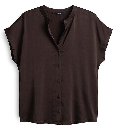Damen Blusenshirt aus Satin Rückenteil aus Jersey Tunikaausschnitt Kurzarm Knopfleiste Unifarben Farbbezeichnung: Dark Espresso Material: 100% Viskose ...