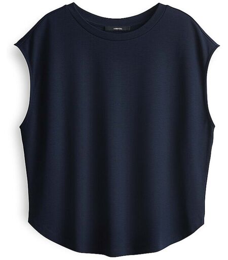 Damen T-Shirt aus Viskose mit Stretch-Anteil Sweatware Rundhalsausschnitt Ohne Arm Weich fließender Fall Abgerundeter Saum Lockere Passform Unifarben Farbbezeichnung: Ocean Material: 96% Viskose, 4% Elasthan ...
