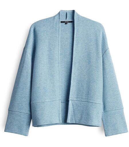Damen Strickjacke aus Viskose-Sweat mit weichem Griff Offene Front Langarm mit überschnittenen Schultern Breite Bündchen Lockere Passform Kurz geschnitten Unifarben Farbbezeichnung: Arctic Blue Material: 45% Viskose, 35% Polyester, 20% Polyamid ...