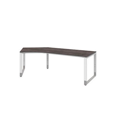 röhr Imperia höhenverstellbarer Schreibtisch quarzit Bogenform, Kufen-Gestell weiß 217,0 x 114,0 cm