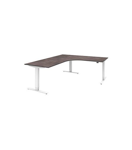 röhr Imperia elektrisch höhenverstellbarer Schreibtisch quarzit fünfeckig, T-Fuß-Gestell weiß 180,0/200,0 x 80,0/200,0 cm