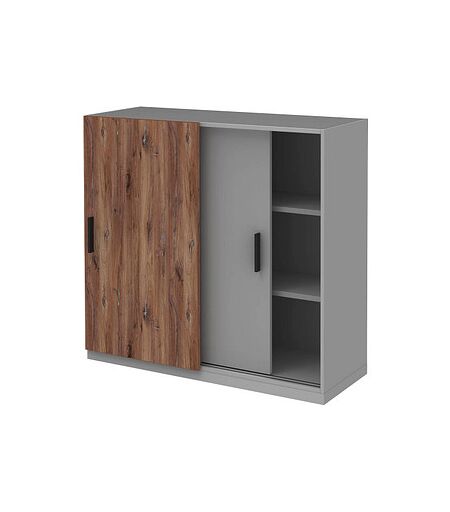 Übersichtlich und dekorativ – der röhr Schiebetürenschrank quantum, 180/3D6/6120-85-R1 grau, eiche 2 Fachböden 120,0 x 41,9 x 112,5 cmDer röhr Schiebetürenschrank quantum, 180/3D6/6120-85-R1 grau, eiche 2 Fachböden 120,0 x 41,9 x 112,5 cm ist für die Lagerung Ihrer Unterlagen eine hervorragende Wahl. Auch bei engsten Platzverhältnissen finden Sie genügend Stauraum. Bei diesem Schranktyp wird nämlich wesentlich weniger Platz als bei anderen Möbelelementen benötigt.Welche Fakten gibt es zu beachten?Folgende Werkstoffe und deren Herstellungsart geben Ihnen kaufrelevante Informationen: Der Korpus besteht aus Spanplatte und hat ein modernes Design. Die Korpuswände haben eine Wandstärke von 1,6 cm. Die Schrankoberfläche hat eine robuste Pulverbeschichtung. Das macht dieses Möbelstück pflegeleicht und sorgt für eine lange Lebensdauer.Hier noch weitere Merkmale zu diesem ArtikelDie perfekte Farbkombination dieses Möbelstücks, mit dem Korpus in Grau und der Front in Grau#!#eiche, macht es zum Lieblingsstück Ihrer Räumlichkeiten. Werfen Sie einen Blick auf folgende Maße: Breite: 120,0 cmTiefe: 41,9 cmHöhe: 112,5 cmDas Gesamtgewicht des Möbelstücks beträgt 75 kg.Fachböden sorgen für OrdnungDank Fachböden können Sie Ihre Unterlagen übersichtlich verstauen. Dieser Artikel hat 2 Fachböden aus Holz. Mit einer Tragkraft von 8,0 kg je Fachboden können Sie hier einige Ordner und anderes abstellen. Das heißt in diesem Fall: Hier finden mühelos 3 Ordnerreihen Platz.Griffbereit!Das Öffnen und Schließen geht ganz bequem per Griffleisten. Die Griffe sind aus robustem Metall hergestellt.Mit praktischen VorteilenDamit Sie keine Zeit für den Aufbau aufbringen müssen, erfolgt die Anlieferung aufgebaut.Kombinieren Sie mit weiteren Elementen des gleichen LooksWählen Sie unter vielen Kombinationsmöglichkeiten und gestalten Sie Ihr Büro mit weiteren Einrichtungselementen aus dem Möbelprogramm quantum.Entspricht dieser Artikel Ihren Vorstellungen?Dann können Sie den röhr Schiebetürenschrank quantum, 180/3D6/6120-85-R1 grau, eiche 2 Fachböden 120,0 x 41,9 x 112,5 cm einfach hier in unserem Online-Shop bestellen und erhalten die Lieferung im Handumdrehen. ...