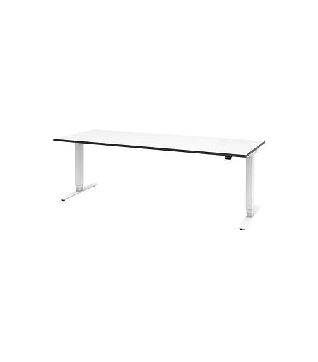 Stilvolle Büroeinrichtung mit dem röhr Imperia elektrisch höhenverstellbaren Schreibtisch weiß rechteckig, T-Fuß-Gestell weiß 200,0 x 80,0 cmEs ist allgemein bekannt, dass sich bei der Arbeit im Büro ein regelmäßiger Wechsel zwischen Sitzen und Stehen positiv auf Ihren Körper auswirkt – daher ermöglicht Ihnen der röhr Imperia elektrisch höhenverstellbare Schreibtisch weiß rechteckig, T-Fuß-Gestell weiß 200,0 x 80,0 cm auch das Arbeiten im Stehen.Wechseln Sie zwischen Sitzen und StehenSie können das Modell in der Höhe verstellen. Damit der Wechsel zwischen Sitzen und Stehen jederzeit unkompliziert möglich ist, können Sie die Höhe elektrisch verstellen. Hierbei können Sie zwischen einer Höhe von 64,0 - 128,0 cm wählen. Die Hubgeschwindigkeit liegt bei 4,0 cm/ Sek.Mit diesen Funktionen ist das Exemplar ausgestattetFolgende praktische Funktionen besitzt das Produkt: Soft Start/Stopp Funktion, Kollisionsschutz. Der Kollisionsschutzmechanismus sorgt dafür, dass die Bewegung unterbrochen wird, wenn ein Hindernis entdeckt wird, um Schäden und Verletzungen zu verhindern. Die Soft Start/Stopp Funktion sorgt für eine sanfte und geräuscharme Bewegung beim Verstellen der Höhe, wodurch die Lebensdauer des Motors verlängert und die Bedienung komfortabler wird. Ein harmonisches GesamtbildMacht in nahezu jedem Raum eine gute Figur: das weiße T-Fuß-Gestell und die weiße Tischplatte. Möbel können einen wesentlichen Teil zum Wohlbefinden beitragen. Daher sollten Sie bei der Auswahl Ihres neuen Möbelstücks auch die optischen Merkmale nicht außer Acht lassen.Alles zur Tischplatte und zum GestellDie 2,2 cm dicke Tischplatte mit Melaminharzbeschichtung macht das Möbelstück kratzfest und besonders einfach zu pflegen. Die Tischplatte besteht aus Spanplatten und das Gestell aus Stahl. Somit ist das Modell robust und stabil.Überzeugt? Dann muss er passen!Das Modell besteht aus den Maßen 200,0 x 80,0 cm (BxT) und ist 69,5 kg schwer.Hört sich gut an, richtig?Dann bestellen Sie den röhr Imperia elektrisch höhenverstellbaren Schreibtisch weiß rechteckig, T-Fuß-Gestell weiß 200,0 x 80,0 cm doch einfach hier bei uns online! ...