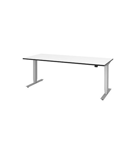 Ein Blickfang für jedes Büro – der röhr Imperia elektrisch höhenverstellbare Schreibtisch weiß rechteckig, T-Fuß-Gestell silber 180,0 x 80,0 cmMit dem röhr Imperia elektrisch höhenverstellbaren Schreibtisch weiß rechteckig, T-Fuß-Gestell silber 180,0 x 80,0 cm können Sie zwischen Sitzen und Stehen entscheiden und erhalten somit eine ergonomische Lösung für Ihren Arbeitsplatz. Er ermöglicht es Ihnen, Ihre Arbeitsposition flexibel zu wechseln. Eine wechselnde Arbeitsposition hat viele Vorteile, z.B.: Die Entlastung der WirbelsäuleFörderung der KonzentrationAbwechslungSteigende BewegungsaktivitätWechseln Sie zwischen Sitzen und StehenMit diesem neuen Arbeitsplatz erhalten Sie ein höhenverstellbares Modell. Elektrisch und somit besonders komfortabel können Sie zwischen einer Höhe von 64,0 - 128,0 cm wählen. Hierbei beträgt die Hubgeschwindigkeit 4,0 cm/ Sek..Passen die äußeren Werte?Der röhr elektrisch höhenverstellbare Schreibtisch hat ein Gewicht von 54 kg und setzt sich aus den Maßen 180,0 x 80,0 cm (BxT) zusammen.Informationen zum MaterialDie Tischplatte besteht aus Spanplatten und das Gestell aus Stahl. Somit ist das Modell in der Regel langlebig und stabil. Dank der Melaminharzbeschichtung ist die 2,2 cm starke Platte auch noch besonders pflegeleicht und unempfindlich gegen Kratzer etc.Die optischen MerkmaleDa die Einrichtung zum Wohlbefinden beiträgt, sind neben den funktionalen auch die optischen Merkmale relevant. Dieses Möbelstück verfügt über ein silbernes T-Fuß-Gestell. In Kombination mit der weißen Tischplatte fügt es sich in nahezu jeden Einrichtungsstil ein. Die Funktionen im ÜberblickDiese Funktionen warten auf Sie: Soft Start/Stopp Funktion, Kollisionsschutz. Der Kollisionsschutzmechanismus sorgt dafür, dass die Bewegung unterbrochen wird, wenn ein Hindernis entdeckt wird, um Schäden und Verletzungen zu verhindern. Die Soft Start/Stopp Funktion gewährleistet einen reibungslosen und leisen Übergang bei Höhenverstellungen, was den Komfort und die Langlebigkeit der Mechanik verbessert. Erfüllt dieses Modell Ihre Wünsche?Dann können Sie den röhr Imperia elektrisch höhenverstellbaren Schreibtisch weiß rechteckig, T-Fuß-Gestell silber 180,0 x 80,0 cm bequem in unserem Online-Shop bestellen. ...