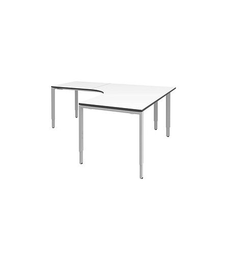 röhr Imperia höhenverstellbarer Schreibtisch weiß L-Form, 6-Fuß-Gestell silber 180,0 x 80,0/200,0 cm