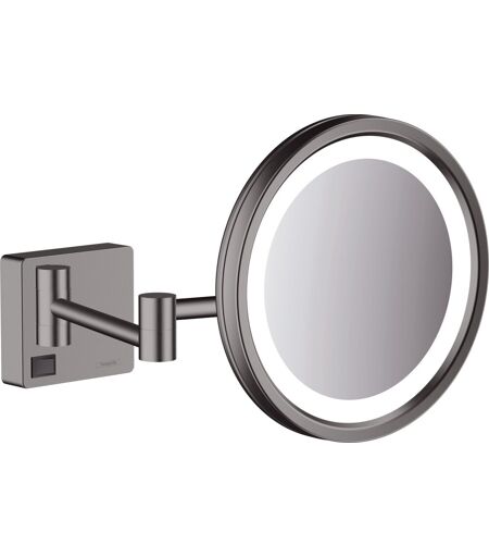 hansgrohe AddStoris Rasierspiegel mit LED Leuchte, 41790340 Erste Wahl: das klare Design strahlt Wertigkeit aus und harmoniert gut mit modernen Armaturen von hansgrohe Inklusive LED-Beleuchtung: praktischer Rasierspiegel für die Wandmontage mit 3-facher Vergrößerung Statement im Bad: Die langlebige Oberfläche in metallischem Schwarz-Chrom bildet einen optisch reizvollen Kontrast Einfach montiert: der Rasierspiegel wird angeschraubt (Lochabstand 48 mm) und mit dem Stromnetz verbunden. Befestigungsmaterial im Lieferumfang Lieferumfang: Rasierspiegel, Netzteil, Befestigungsmaterial, Montageanleitung In allen Bestandteilen sind Premium-Materialien verbaut – für mehr Sicherheit und Nachhaltigkeit im Haushalt hansgrohe seit 1901 – die Premium-Marke für zuverlässige Bad- und Küchenprodukte 5 Jahre freiwillige Herstellergarantie auf ein Produkt, das nach höchsten Qualitätsstandards gefertigt wurde weitere Details: Farbe: Brushed Black Chrome Form: rund Montageart: Wandmontage;Hohlraumdose zur Installation erforderlich Material: Spiegelglas Gewicht netto in kg: 1,51 Höhe netto in mm: 217 Breite netto in mm: 208 Tiefe netto in mm: 393 ...