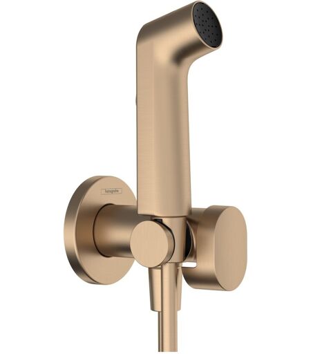 hansgrohe Bidette Handbrause 1jet S EcoSmart für Warmwasser mit Brausehalter und Brauseschlauch 125 cm, Brushed Bronze, 29232140 besteht aus: Bidette Handbrause, Absperrventil mit integriertem Brausehalter, Brauseschlauch Brausekopfgröße: 28 mm maximale Durchflussmenge bei 3 bar: 6,2 l/min Mindestfließdruck: 1 bar Betriebsdruck: min. 1 bar/max. 10 bar nicht geeignet für Betrieb in Ländern mit gültiger EN 1717 Brauseschlauch mit beidseitig konischer Mutter brauseseitiger Drehwirbel gegen lästiges Verdrehen des Brauseschlauches Länge Brauseschlauch: 1250 mm Anschlussart: Grundkörper mit Rückflussverhinderer integrierte Brausehalterfunktion Wandstützen aus Metall Wandbefestigung: Schraubbefestigung ausspülbare Siebdichtung nicht eigensicher gegen Rückfließen nicht enthalten: Grundkörper EU-Taxonomie: max. 8 l/min - Vermeidung erheblicher Beeinträchtigungen (DNSH) ...