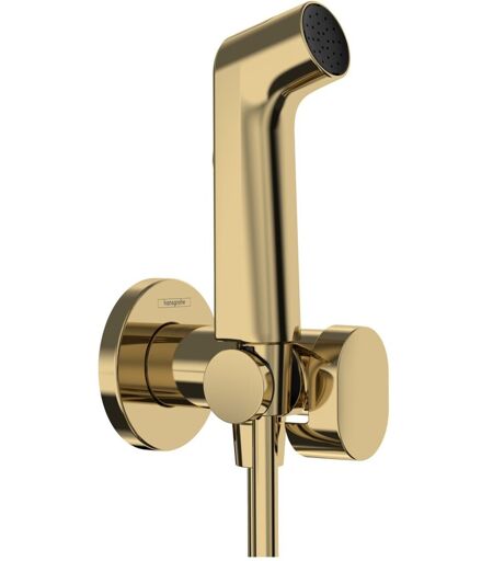 hansgrohe Bidette Handbrause 1jet S EcoSmart für Kaltwasser mit Brausehalter und Brauseschlauch 125 cm, Polished Gold Optic, 29230990 besteht aus: Bidette Handbrause, Absperrventil mit integriertem Brausehalter, Brauseschlauch Brausekopfgröße: 28 mm maximale Durchflussmenge bei 3 bar: 6,2 l/min Mindestfließdruck: 1 bar Betriebsdruck: min. 1 bar/max. 10 bar nicht geeignet für Betrieb in Ländern mit gültiger EN 1717 Brauseschlauch mit beidseitig konischer Mutter brauseseitiger Drehwirbel gegen lästiges Verdrehen des Brauseschlauches Länge Brauseschlauch: 1250 mm Anschlussart: G ½ mit Rückflussverhinderer integrierte Brausehalterfunktion Wandstützen aus Metall Wandbefestigung: Schraubbefestigung ausspülbare Siebdichtung nicht eigensicher gegen Rückfließen EU-Taxonomie: max. 8 l/min - Vermeidung erheblicher Beeinträchtigungen (DNSH) ...