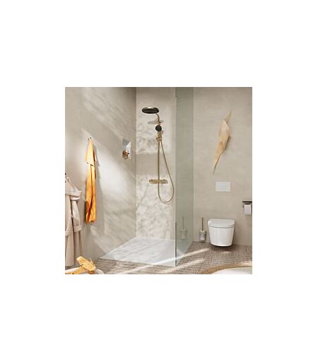 hansgrohe Pulsify S Puro Brauseset 24236140Eindrucksvolles minimalistisches Design bildet die Basis für maximales DuschvergnügenDuschkopf mit PowderRain: mikrofeine Tropfen verwöhnen wie ein hauchzarter SommerregenWasser an – Alltag aus: Die Thermostatfunktion verwöhnt mit einer gleichmäßigen WassertemperaturHandbrause inklusive: Die Pulsify Select S 105 mit drei Strahlarten bietet noch mehr FlexibilitätLänger wie neu: Kalk lässt sich von den Silikondüsen am Duschkopf leicht abwischen (QuickClean)Mit einer Hand: Der Brausehalter lässt sich über eine Taste komfortabel verstellenEinfach eingebaut: Dank Aufputzmontage muss die Wand nicht geöffnet werden. S-Anschlüsse liegen beiWeniger Nachtropfen: Restwasser fließt nach dem Duschen schnell ab (FastDrain)Flexibel: Die Kopfbrause ist im Winkel verstellbar und lässt sich individuell ausrichtenIndividuelle Ausstrahlung: Die gebürstete Oberfläche im Bronze-Ton erzeugt ein harmonisches, warmes AmbienteLieferumfang: Showerpipe mit Thermostat, S-Anschlüsse, Befestigungsmaterial, MontageanleitungIn allen Bestandteilen sind Premium-Materialien verbaut – für mehr Sicherheit und Nachhaltigkeit im Haushalthansgrohe seit 1901 – die Premium-Marke für zuverlässige Bad- und Küchenprodukte5 Jahre freiwillige Herstellergarantie auf ein Produkt, das nach höchsten Qualitätsstandards gefertigt wurde ...