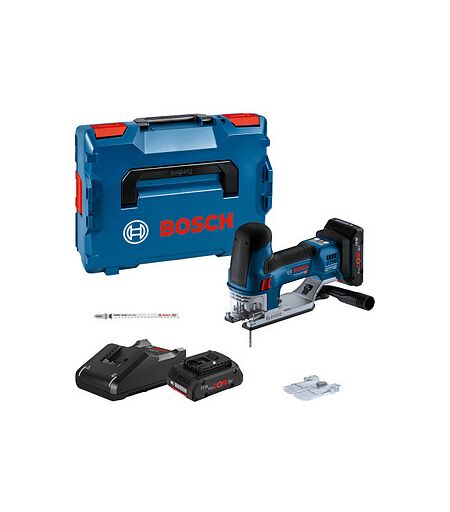 BOSCH Professional GST 18V-155 SC Akku-Stichsäge Set: mit Präzision und Leistung sägenDas BOSCH Professional GST 18V-155 SC Akku-Stichsäge Set ist die ultimative Lösung für anspruchsvolle Handwerker und Profis. Mit dieser hochwertigen Stichsäge erledigen Sie Ihre Sägearbeiten mit Präzision und Leichtigkeit.Doppelte Kraft mit 2x 18V AkkusDiese Stichsäge wird von zwei leistungsstarken 18V Akkus gespeist, die im Lieferumfang enthalten sind. Mit dieser doppelten Energiequelle erzielen Sie herausragende Schnittergebnisse.Leistungsstark und vielseitigDie GST 18V-155 SC bietet eine variable Hubzahl von 800 - 3.800 Hüben pro Minute im Leerlauf, um Ihre Anforderungen perfekt zu erfüllen. Die Schnitttiefe beträgt beeindruckende 155 mm in Holz, 10 mm in Stahl und 20 mm in Aluminium.Werkzeugloser SägeblattwechselDer werkzeuglose Sägeblattwechsel ermöglicht Ihnen ein schnelles Umrüsten für verschiedene Materialien und Anwendungen.Pendelung und StaubabsaugungDie integrierte Pendelungsfunktion sorgt für schnelle und präzise Schnitte. Die Staubabsaugung mit Abdeckhaube und Absaugdüse hält Ihren Arbeitsbereich sauber und ermöglicht eine klare Sicht auf die Schnittlinie.Integrierte ArbeitsleuchteDie eingebaute Arbeitsleuchte beleuchtet den Arbeitsbereich optimal, selbst bei schlechten Lichtverhältnissen.Komplettes SetIm Lieferumfang enthalten sind nicht nur die Stichsäge und die 2x 18V Akkus, sondern auch ein Schnellladegerät, die robuste L-BOXX 136 für sicheren Transport und Aufbewahrung, Stichsägeblätter T 144 DP Precision for Wood und T 308 BP Precision for Wood, Abdeckhaube für die Staubabsaugung, Absaugdüse, Spanreißschutz und L-BOXX Einlage für Gerät und Ladegerät.Mit dem BOSCH Professional GST 18V-155 SC Akku-Stichsäge Set sind Sie für jede Herausforderung gerüstet. Erleben Sie Präzision, Leistung und Vielseitigkeit in einem kompletten Paket. ...