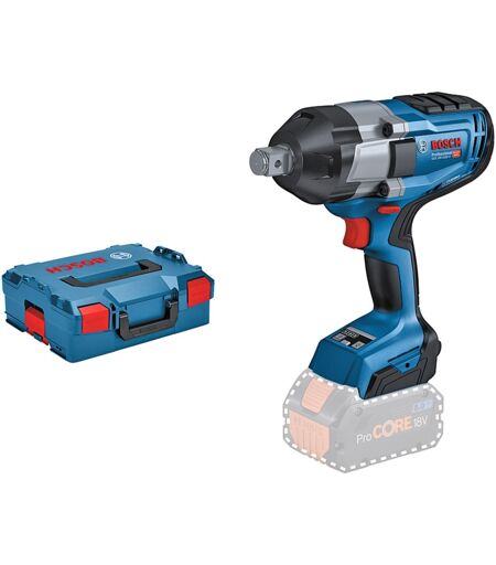 Der Bosch Akku-Drehschlagschrauber GDS 18V-1050 H Professional bietet eine kraftvolle Leistung mit drei Geschwindigkeits- und Drehmomentstufen. Das neue Schlagwerk wurde für ein maximales Anziehmoment von 1.050 Nm und ein maximales Lösemoment von bis zu 1.700 Nm konzipiert, und bietet optimale Leistung bei Arbeiten unter schwierigsten Bedingungen. Er ist die perfekte Wahl für extrem schnellen Arbeitsfortschritt dank außergewöhnlich leistungsstarker ProCORE18V-Akkus (separat erhältlich) und des bürstenlosen Motors mit BITURBO-Technologie. Der Schlagschrauber eignet sich perfekt für den Metallbau mit Maschinenschrauben von M 10 bis M 24 wie Stahlbaukonstruktionen, Metallverbindungen, Rohrmontage, LKW-Instandhaltung, oder Holzkonstruktionen. Die 3/4"-Werkzeugaufnahme ist mit einem Sprengring plus Sicherungsbohrung ausgestattet. Der GDS 18V-1050 H Professional ist mit allen Bosch Professional 18-Volt-Akkus und -Ladegeräten kompatibel (Flexible Power System). Außerdem verfügt er über einen praktischen Bügelclip für bequemes Einhängen des Schlagschraubers an der Leiter. ...