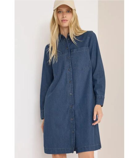 Das knielange Kleid von CECIL für Damen bringt mit seinem Denim-Look lässigen Charme in deinen Alltag. Der angenehme Lyocell-Baumwollmix sorgt für ein softes Tragegefühl, während Hemdkragen, Brusttaschen und die durchgehende Knopfleiste für einen klassischen Look sorgen. Ideal zum unkomplizierten Kombinieren – ob mit Sneakern oder Boots. ...