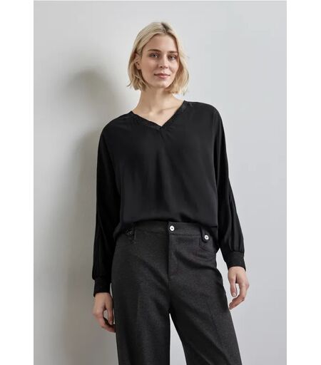 Diese Dolman Bluse von Street One für Damen überzeugt mit einem V-Ausschnitt und glitzernden Tape-Bündchen an den Ärmeln. Die weiche Viskose sorgt für einen besonders angenehmen Tragekomfort. Ein elegantes Highlight für deinen Kleiderschrank. ...