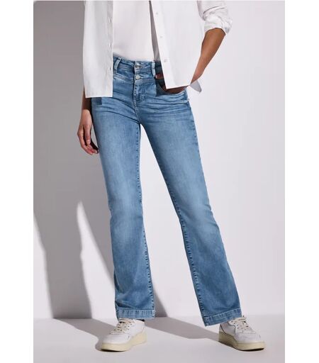 Die Bootcut Jeans im Slim Fit von Street One für Damen überzeugt mit einer figurschmeichelnden Passform sowie High Waist und ausgestellten Beinen. Die hellblaue Denim Waschung verleiht der Jeanshose einen modischen Look, während der Baumwollmix mit Stretchanteil für hohen Tragekomfort sorgt und die Jeans so zu deinem idealen Alltagsbegleiter macht. ...