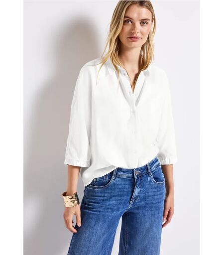 Diese Hemdbluse von Street One für Damen kombiniert einen klassischen Hemdkragen mit einem modernen, fließenden Schnitt. Die kurzen Dolman-Ärmel mit elastischen Bündchen und der seidige Glanz verleihen ihr einen eleganten Touch. Der leichte Modalmix trägt sich besonders angenehm – ideal für Büro und Freizeit. ...